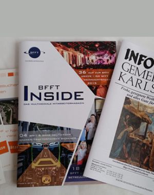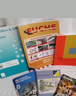 Broschüren in Klammerheftung z.B. Vereinszeitungen Hochzeitsszeitungen periodisch erscheinende Gemeindezeitungen inklusive Postaufgabe bis zu 64 Seiten, darüber als Klebebindung (siehe "Diplomarbeiten").
